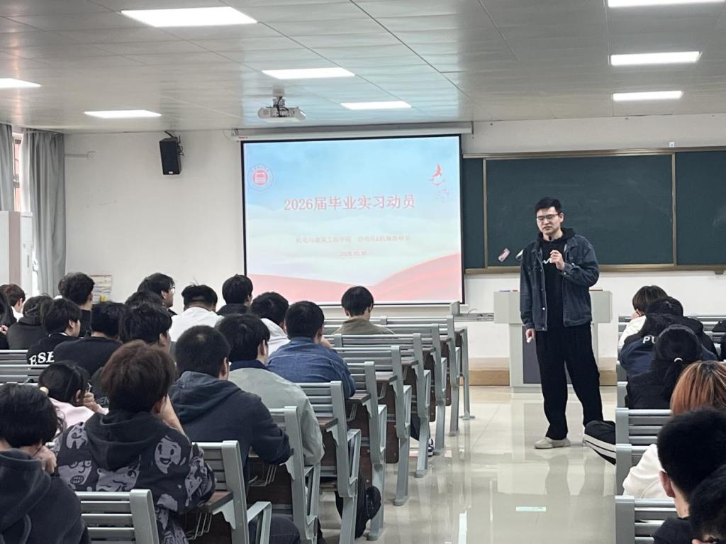 近期,十大买球的正规网站在一教320召开2026届毕业生实习动员大会,院长助理陈家乐、就业实习指导老师、毕业班辅导员及2022级自动化专业、2022级机械设计制造及其自动化专业全体学生等参加了动员大会。本次动员大会由自动化教研室主任朱鑫磊老师主持,围绕毕业实习的整体安排、具体要求及注意事项进行了全面讲解。
