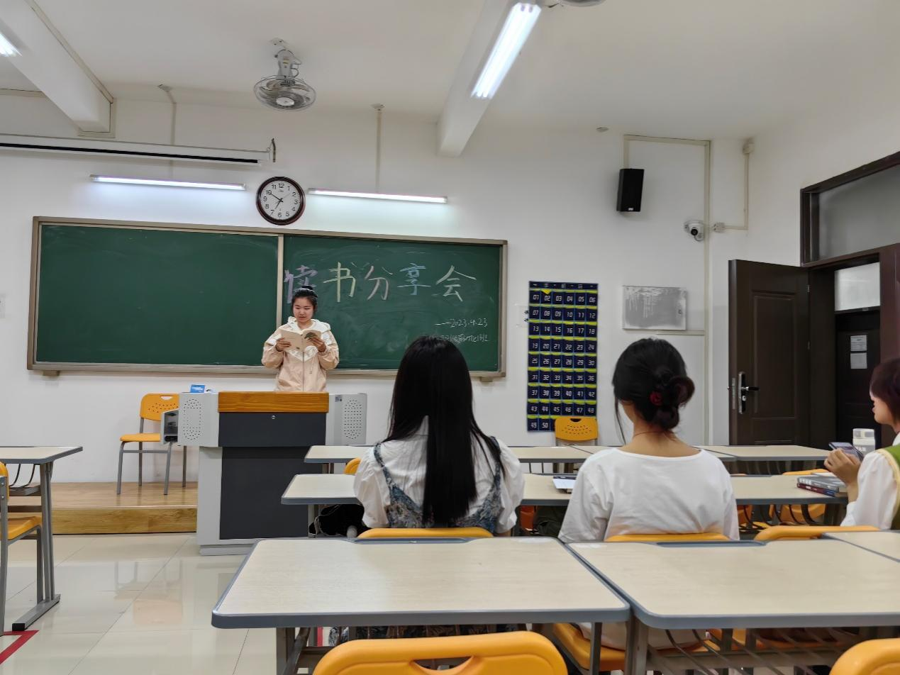 在“读书分享会”活动中,同学们上台分享了自己热爱的书籍,共同讨论分享喜欢的书籍。其中周冕冕同学上台分享了《布鲁克林有棵树》;朱唐乐同学上台讲述了史铁生的《我与地坛》。