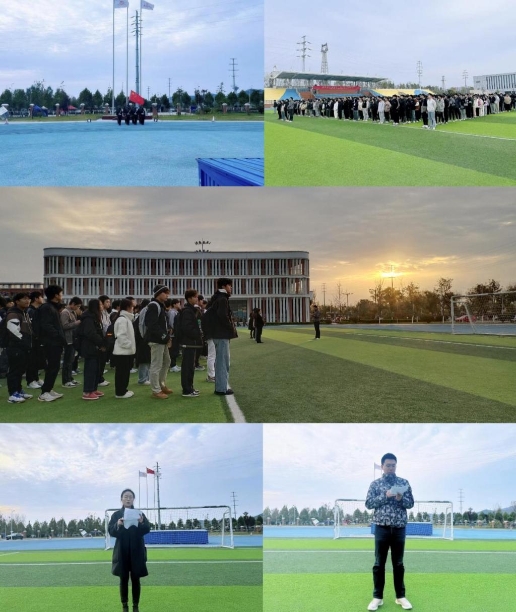 红旗飘扬,共筑安全新起点。11月18日清晨,2023级、2024级带班辅导员及各班级全体学生在操场参加升旗仪式。在激昂的国歌声中,鲜艳的五星红旗徐徐升起,迎风飘扬。学院团总支书记邓金鑫老师在升旗仪式上发表了主题演讲,着重强调了平安校园建设对于广大师生学习生活的重大意义,诚挚号召全体师生齐心协力、共同努力;教师代表刘鸿飞老师宣布启动本年度文明教室、文明宿舍评比活动,激发师生共同参与建设美好校园的热情,促进良好学风和校风的形成与发展,以实际行动为校园安全贡献各自的力量。