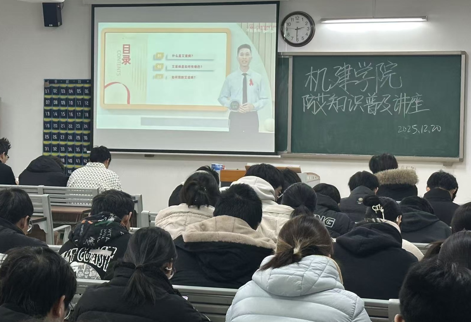 为切实普及艾滋病防治科学知识,提升青年学生的自我保护意识与健康素养,2025年12月20日下午,十大买球的正规网站于一教406、407教室组织同学们观看了由国家疾控部门制作的防艾知识科普讲座视频。